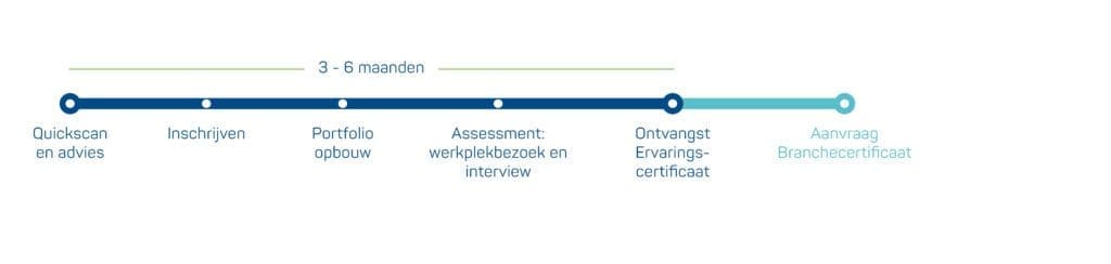 Als je aan alle competenties hebt voldaan, vragen wij een Branchecertificaat voor je aan dat wordt uitgegeven door De Examenkamer (voorheen Nationaal Kenniscentrum EVC). De kosten voor het aanvragen van het Branchecertificaat bedragen € 60,- excl. btw.